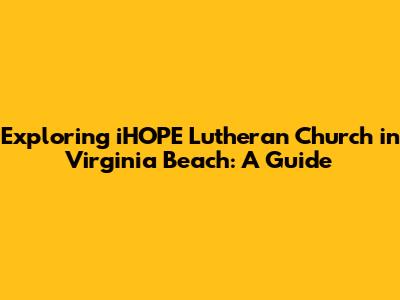 Hey there, friends! Ever wondered about finding a church that feels like home, especially if you're in the Virginia Beach area? Well, let's dive into iHOPE Lutheran Church in Virginia Beach. This article is your friendly guide to everything you might want to know about this awesome community. We'll explore their beliefs, activities, and what makes iHOPE a special place for so many folks. Ready to learn more? Let's go!
