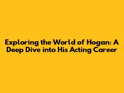 Exploring The World Of Hogan: A Deep Dive Into His Acting Career