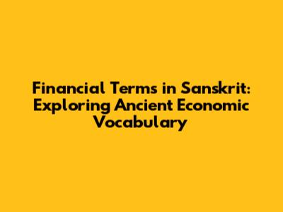 Introduction to Sanskrit Financial Vocabulary