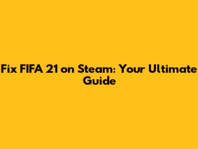 Fix FIFA 21 On Steam: Guide & Tips