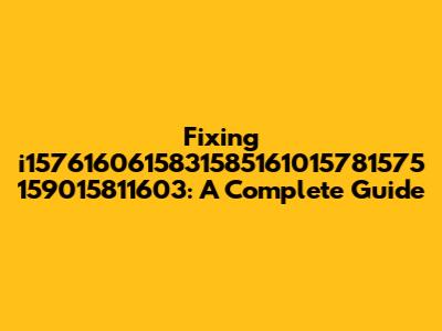 Fixing I1576160615831585161015781575 159015811603: A Complete Guide