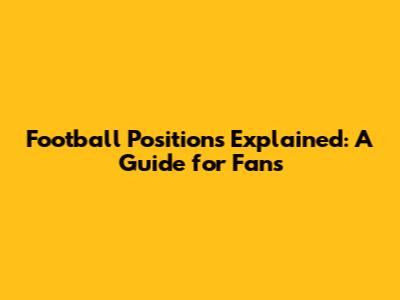 Football Positions Explained: A Guide For Fans