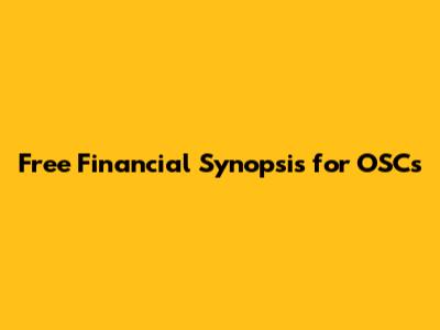 Free Financial Synopsis For OSCs