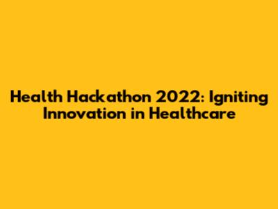 Health Hackathon 2022: Innovation In Healthcare