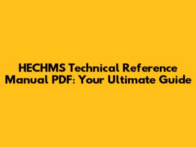 Understanding the HECHMS Technical Reference Manual PDF