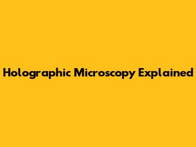 What is Holographic Microscopy?