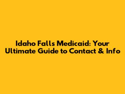 Idaho Falls Medicaid: Contact Info & Guide
