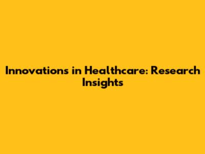 Innovations In Healthcare: Research Insights