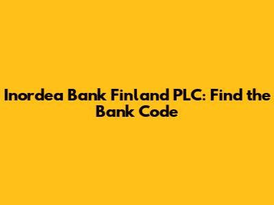 Inordea Bank Finland PLC: Find The Bank Code