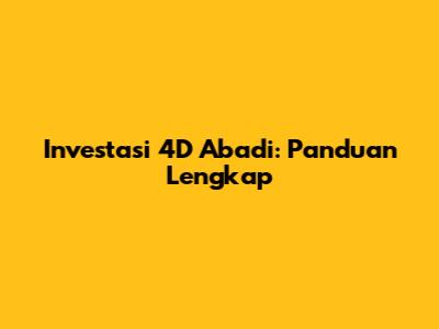 Investasi 4D Abadi: Panduan Lengkap