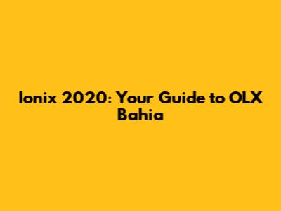 Ionix 2020: Your Guide To OLX Bahia