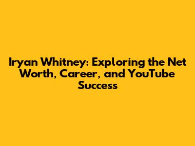 Iryan Whitney: Net Worth, Career & Success Story