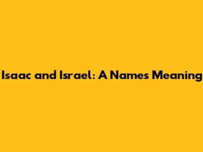 Isaac And Israel: A Name's Meaning