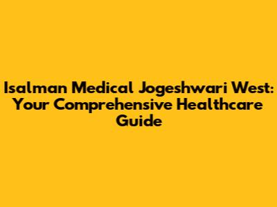 Hey there, health-conscious folks! Today, we're diving deep into Isalman Medical in Jogeshwari West, a healthcare hub that's been serving the community. We'll explore everything from the services they offer to what makes them a go-to choice for medical needs. Whether you're a long-time resident or new to the area, understanding your local healthcare options is crucial. So, grab a seat, get comfy, and let’s unravel all things Isalman Medical! We'll cover everything from their specialties to how to get in touch. Let's make sure you're well-informed and ready for any healthcare needs that come your way.