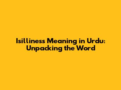 Isilliness Meaning In Urdu: Unpacking The Word