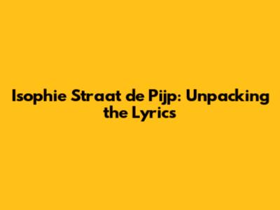 Isophie Straat De Pijp: Unpacking The Lyrics