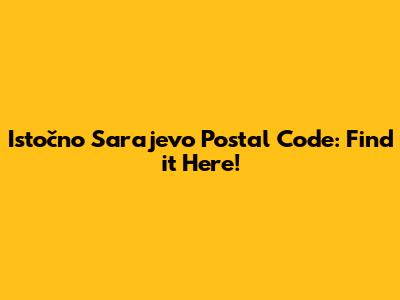Istočno Sarajevo Postal Code: Find It Here!