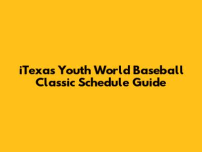 ITexas Youth World Baseball Classic Schedule Guide