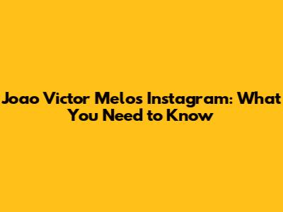 Joao Victor Melo's Instagram: What You Need To Know