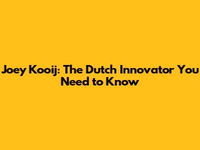Joey Kooij: The Dutch Innovator You Need To Know