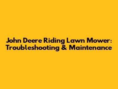 John Deere Riding Lawn Mower: Troubleshooting & Maintenance