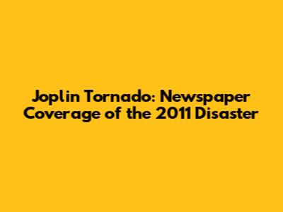 Joplin Tornado: Newspaper Coverage Of The 2011 Disaster