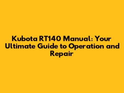 Kubota RT140 Manual: Your Comprehensive Guide