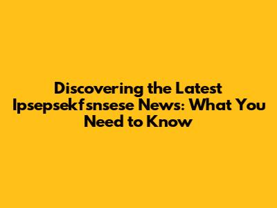 Discovering the Latest Ipsepsekfsnsese News: What You Need to Know