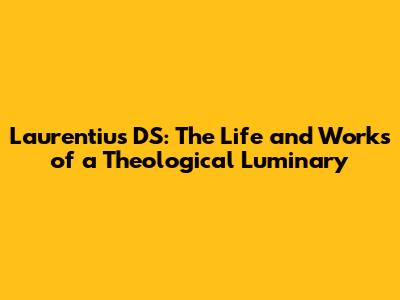 Laurentius DS: The Life And Works Of A Theological Luminary