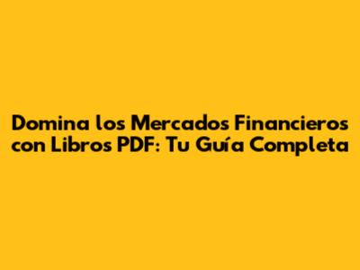 Libros PDF: Domina Los Mercados Financieros Hoy