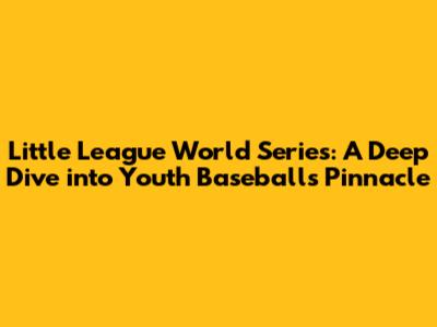 Hey baseball fanatics! Let's dive deep into the Little League World Series (LLWS), a tournament that captures the hearts of fans worldwide. It's the ultimate showdown for young baseball players aged 10-12, a stage where dreams are made, and unforgettable moments are etched into history. The LLWS isn't just a competition; it's a celebration of youth, teamwork, and the pure joy of the game. Let's explore everything from its rich history to the intense competition and the lasting impact it has on these young athletes and the communities they represent.