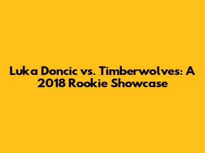Luka Doncic Vs. Timberwolves: A 2018 Rookie Showcase