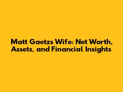 Matt Gaetz's Wife: Net Worth, Assets, And Financial Insights