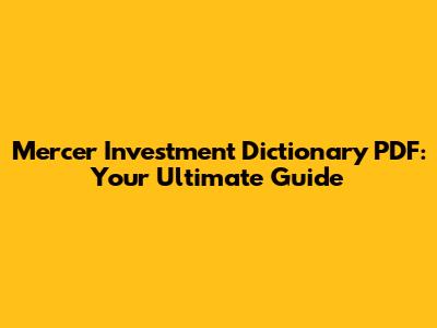 Hey guys, let's dive into the amazing world of finance with the Mercer Investment Dictionary PDF. If you're looking to get a solid grip on all those complex investment terms, this resource is your absolute go-to. We're talking about a comprehensive guide that breaks down jargon, making it super accessible for everyone, from seasoned pros to newbies just starting out. Seriously, understanding the lingo is half the battle in the investment world, and this dictionary helps you win that battle with ease. It’s packed with clear definitions and practical examples, making those tricky concepts feel like a piece of cake. So, buckle up, because we're about to explore why this PDF is a game-changer for anyone interested in investments.