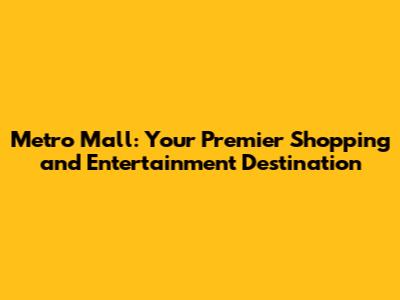 Metro Mall: Your Ultimate Shopping And Entertainment Destination