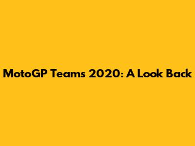 MotoGP Teams 2020: A Look Back