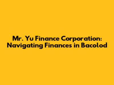 Hey guys! Let's dive into the world of Mr. Yu Finance Corporation in Bacolod. If you're looking for financial solutions in the vibrant city of Bacolod, you've probably come across this name. This article is your go-to guide, breaking down everything you need to know about Mr. Yu Finance Corporation, from its services to how it can potentially help you achieve your financial goals. We'll explore what makes this corporation a key player in the Bacolod financial landscape and how it can be a valuable resource for individuals and businesses alike. Get ready to uncover the ins and outs of this financial institution and see if it's the right fit for your needs. We are going to explore the services it offers, its reputation, and why it's a popular choice for many Bacolod residents. Let's get started and see what Mr. Yu Finance Corporation has to offer. Understanding the local financial landscape is crucial for making smart financial decisions. Mr. Yu Finance Corporation plays a significant role in providing financial services to the local community. So, let's explore how it operates and how it can assist you. Whether you are a local resident, a business owner, or simply someone looking to understand the financial options available in Bacolod, this is the perfect place to start. Buckle up, and let's unravel everything about Mr. Yu Finance Corporation.