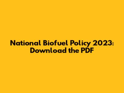 National Biofuel Policy 2023: Download The PDF