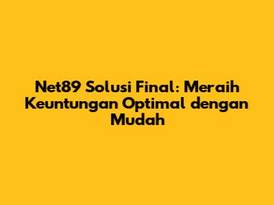 Net89 Solusi Final: Meraih Keuntungan Optimal