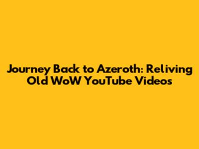 Hey guys, do you ever get that itch to just dive back into the golden days of World of Warcraft? You know, those times when grinding felt like an epic adventure, and every new raid was a monumental challenge? Well, if you're anything like me, you probably spend a good chunk of time reminiscing about those days. And what better way to relive those memories than by diving into some old WoW YouTube videos? These aren't just any videos; they're time capsules, transporting us back to a virtual world that shaped so many of our gaming experiences. From the iconic cinematics that first drew us into the Warcraft universe to the early days of player-made machinima that told hilarious or dramatic stories, YouTube is a treasure trove for any long-time WoW player. We're talking about videos that capture the raw essence of the game before the countless expansions and changes that have reshaped Azeroth over the years. It’s a fantastic way to reconnect with the game’s roots and appreciate how far it’s come, or perhaps, how much some players miss the old ways. So grab your favorite snack, settle in, and let's take a trip down memory lane as we explore the nostalgic WoW YouTube videos that continue to captivate us.