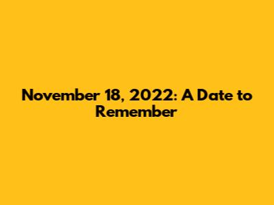 Hey guys! Let's dive into what made November 18, 2022, a date worth remembering. While every day holds its own unique significance, certain dates tend to stand out due to the events, milestones, or cultural moments they encapsulate. This particular Friday wasn't just another day on the calendar; it was a convergence of significant happenings that impacted various spheres, from global politics and entertainment to sports and technological advancements. Understanding the context of such dates helps us appreciate the flow of history and the moments that shape our collective narrative. So, grab a coffee, settle in, and let's explore the noteworthy aspects of November 18, 2022, and why it might just be a date that sticks with you.