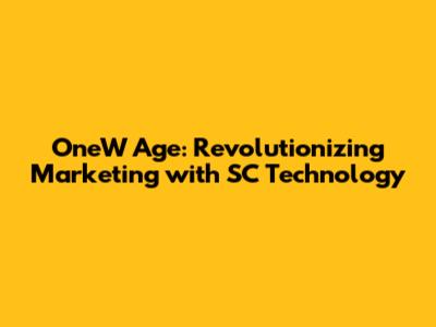 OneW Age: Revolutionizing Marketing With SC Technology