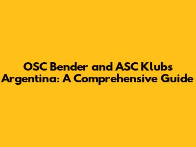 OSC Bender And ASC Klub's Argentina: A Comprehensive Guide