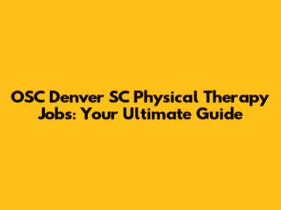 OSC Denver SC: Your Guide To Physical Therapy Jobs