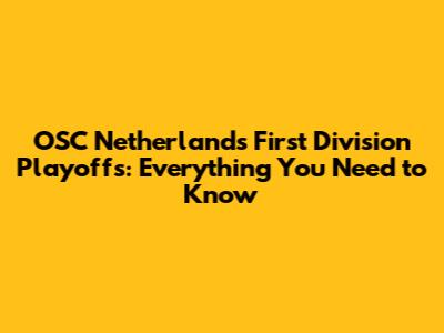 OSC Netherlands First Division Playoffs: Everything You Need To Know