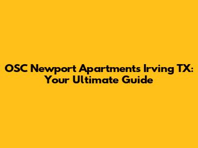 Hey guys! Looking for the perfect apartment in Irving, TX? Let's dive into everything you need to know about OSC Newport Apartments! Finding the right place can be a headache, but I'm here to make it easy-peasy. We'll cover location, amenities, floor plans, and even the neighborhood vibes. Ready to find your dream home? Let's get started!