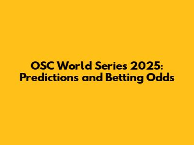 OSC World Series 2025: Predictions And Betting Odds
