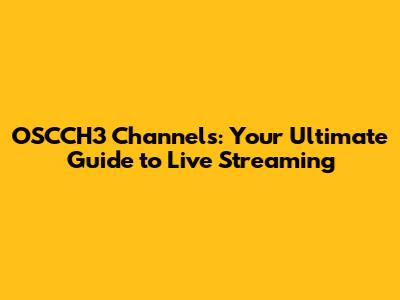 OSCCH3 Channels: Your Guide To Live Streaming
