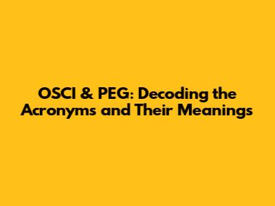 OSCI & PEG: Decoding The Acronyms And Their Meanings
