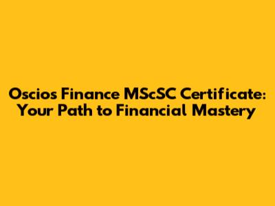 Oscios Finance MScSC Certificate: Your Path To Financial Mastery